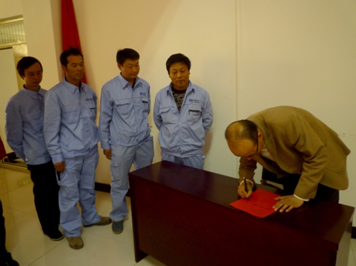 動(dòng)員大會(huì)上各級(jí)領(lǐng)導(dǎo)、各車(chē)間管理干部、車(chē)間班組長(zhǎng)上臺(tái)進(jìn)行“百日安全大練兵”活動(dòng)簽字儀式。