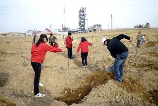 近日,天琛公司組織全體職工走出廠區(qū),關(guān)注綠化,美化瀛海對(duì)今年永寧縣林業(yè)局分批次撥付給我公司的綠化樹苗進(jìn)行愛心栽種,展開了一次有意義的義務(wù)植樹活動(dòng)。