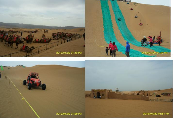4月29日,吃罷早餐,簡單準備,我們登上了去中衛(wèi)的中巴,開始了我們的旅程。約一小時的路程,我們到了中衛(wèi),一下中巴車,馬上就感受到了旅游旺季旅游景點的“熱”。在中衛(wèi)汽車站,沙坡頭旅游公司工作人員得知我們?nèi)ド称骂^玩,便熱情向我們介紹旅游套餐。各種游玩項目價格令人嗔舌,沙坡頭旅游景區(qū)門票在淡季2元/人,在“五一”小長假這樣的旺季,立刻飆升到90元/人,寧夏籍的游客憑身份證每人可以享受65元優(yōu)惠價,大部分游玩項目價格都在80元/人。